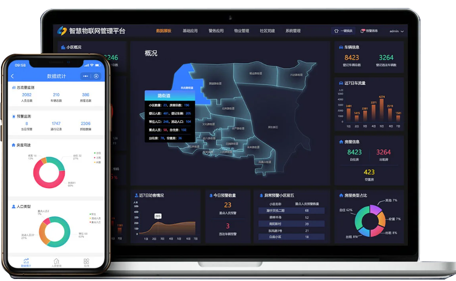 通過物聯(lián)網(wǎng)采集終端數(shù)據(jù),經(jīng)處理分析后將數(shù)據(jù)呈現(xiàn)在可視化大屏上、移動(dòng)端設(shè)備上,實(shí)時(shí)感知并觀察各物聯(lián)設(shè)備的狀態(tài)及數(shù)據(jù)